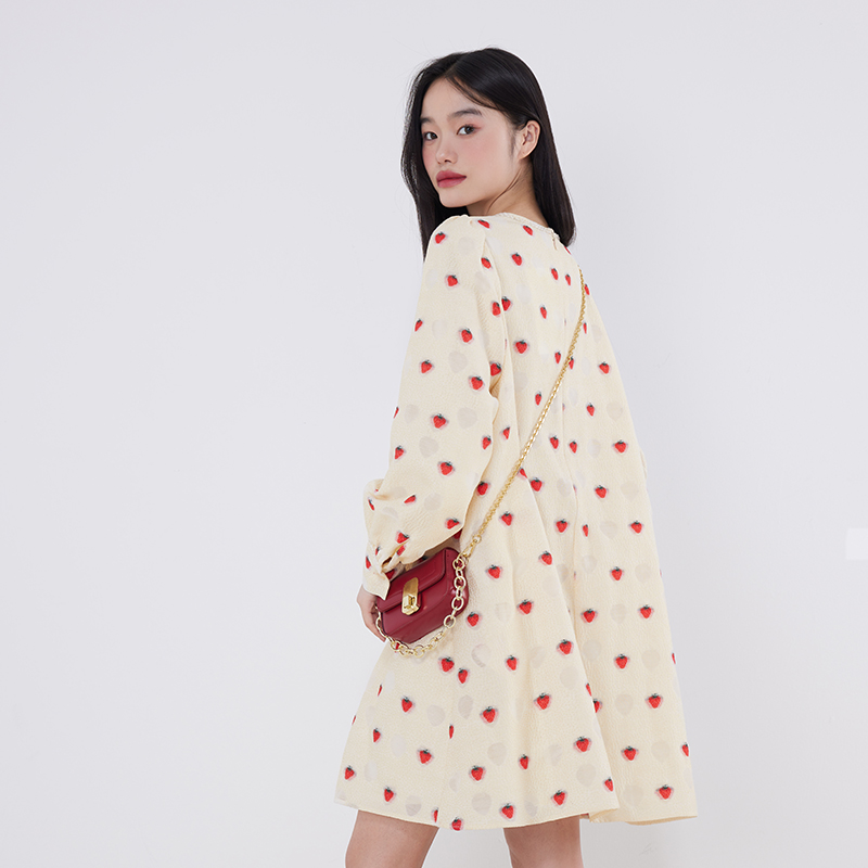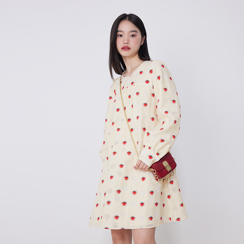 张婧仪同款 圆领连衣裙拼接假两件A1FAF2922 朝夕太平鸟三醋酸法式