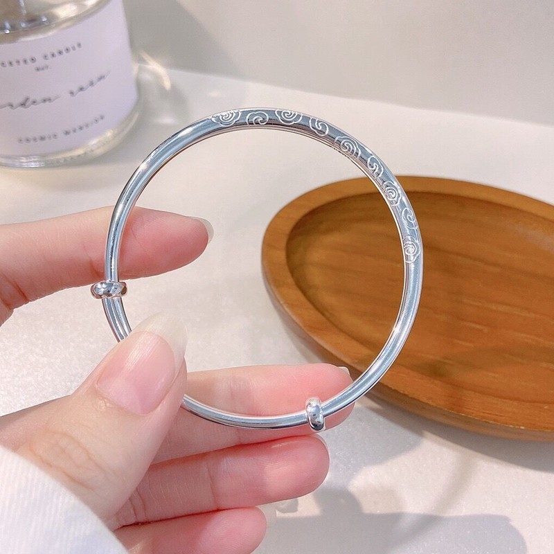 周六福手镯S999足银福云祥纹莲花实心镯子优雅气质节日礼物