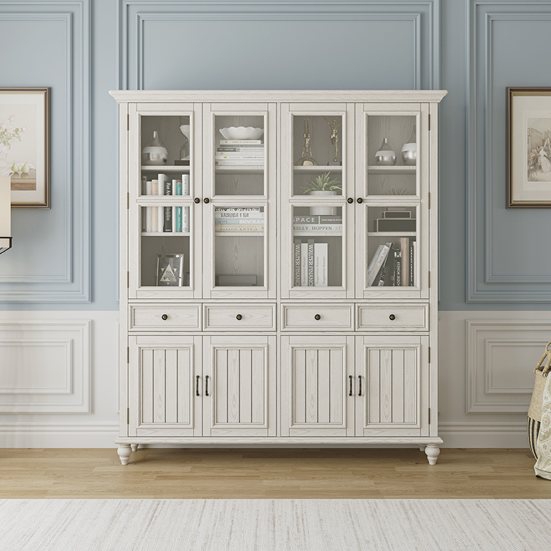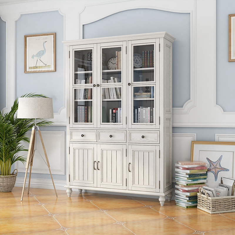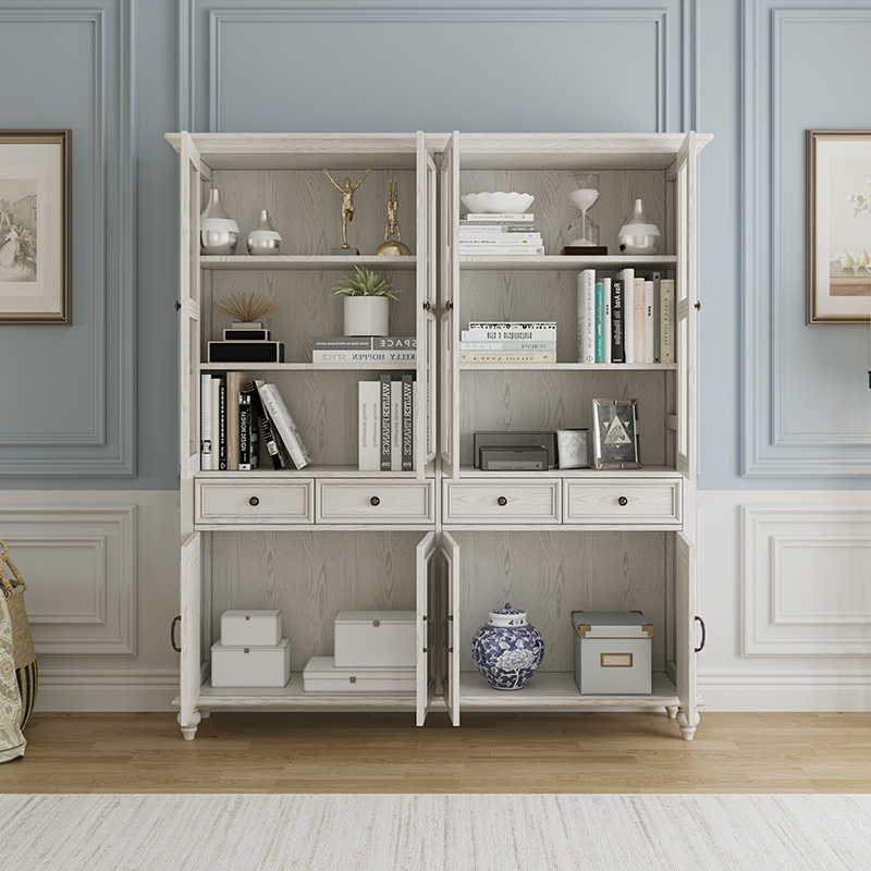 美式 实木书架落地现代简约客厅展示柜置物架书柜组合柜客厅书橱