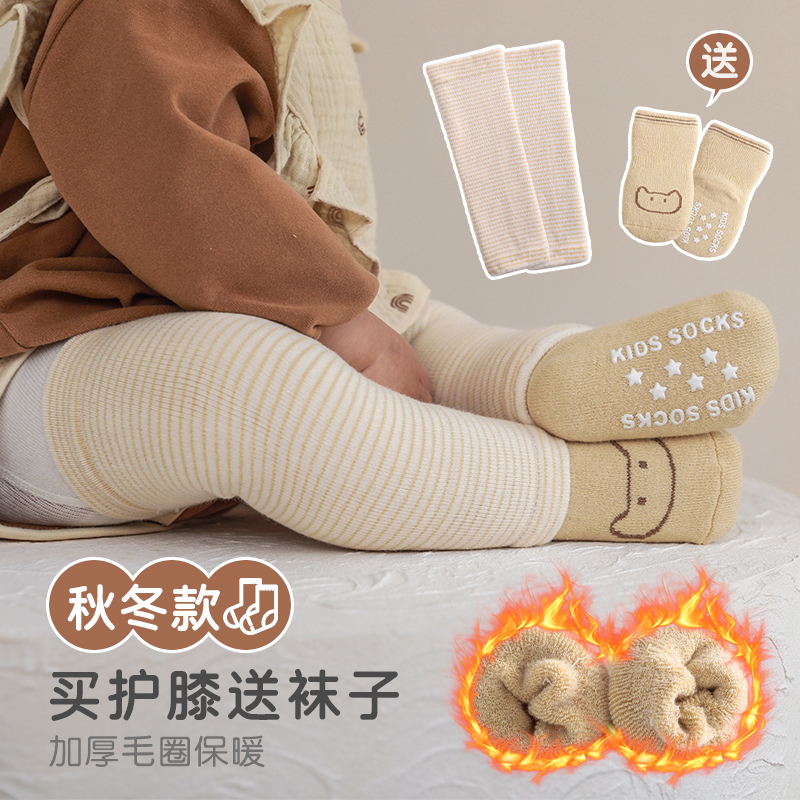 宝宝袜子秋冬棉袜新生婴儿过膝分体长筒袜加绒加厚护膝袜套不勒腿