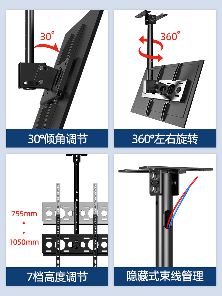 电视吊架天花板吊顶支架伸缩旋转升降奶茶店悬空双屏吊装 壁挂通用