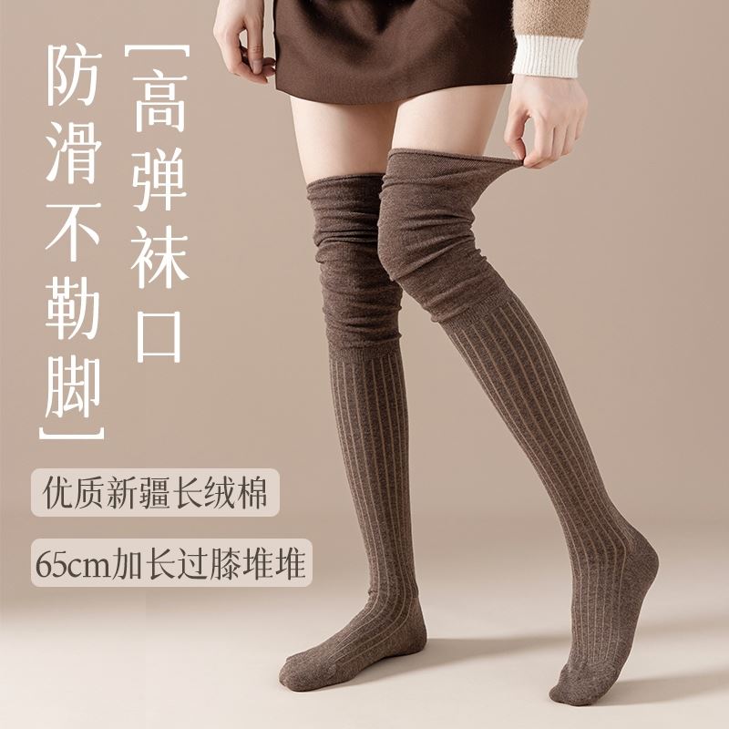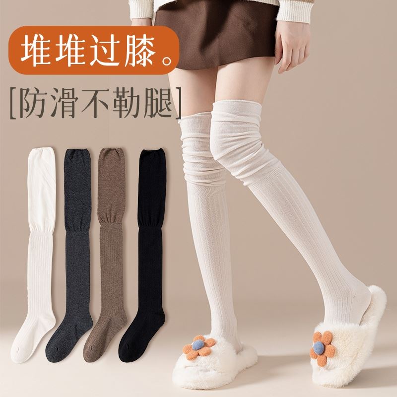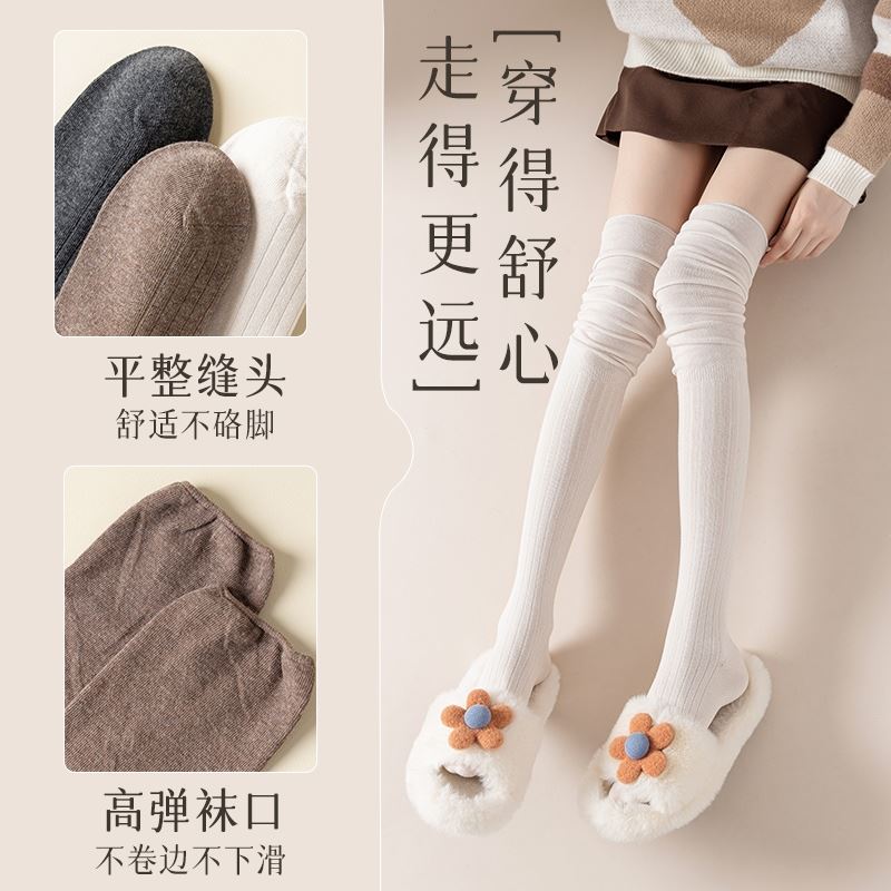 长筒靴袜子女搭配靴子小腿堆堆过膝袜春秋内搭白色大腿长筒袜羊毛