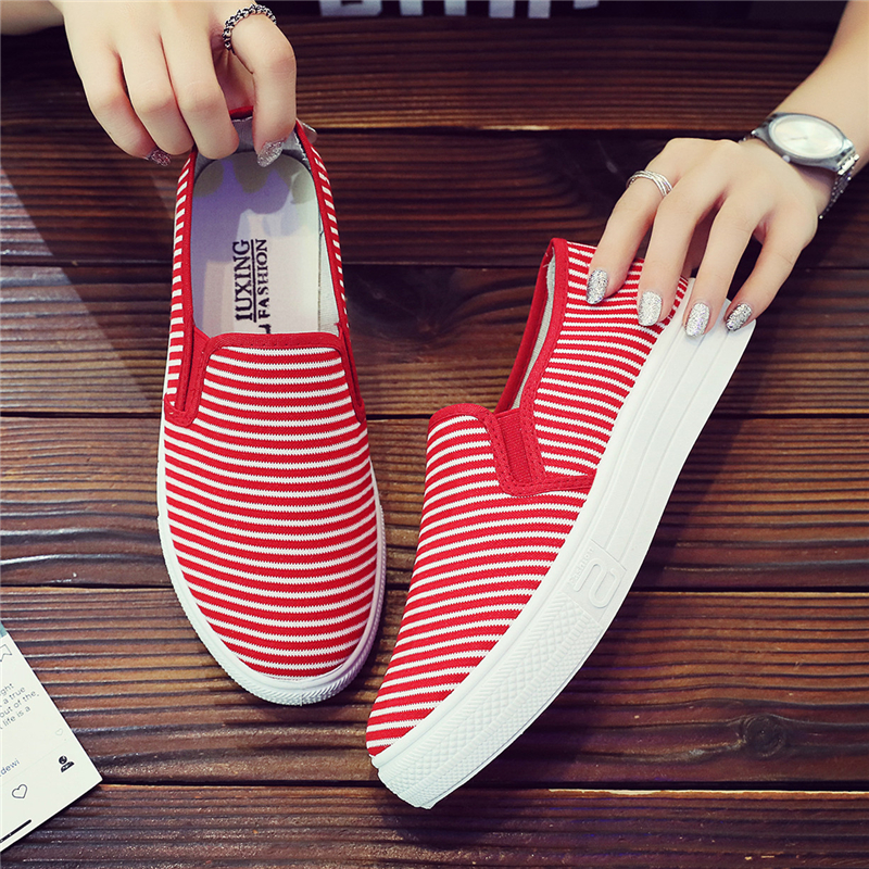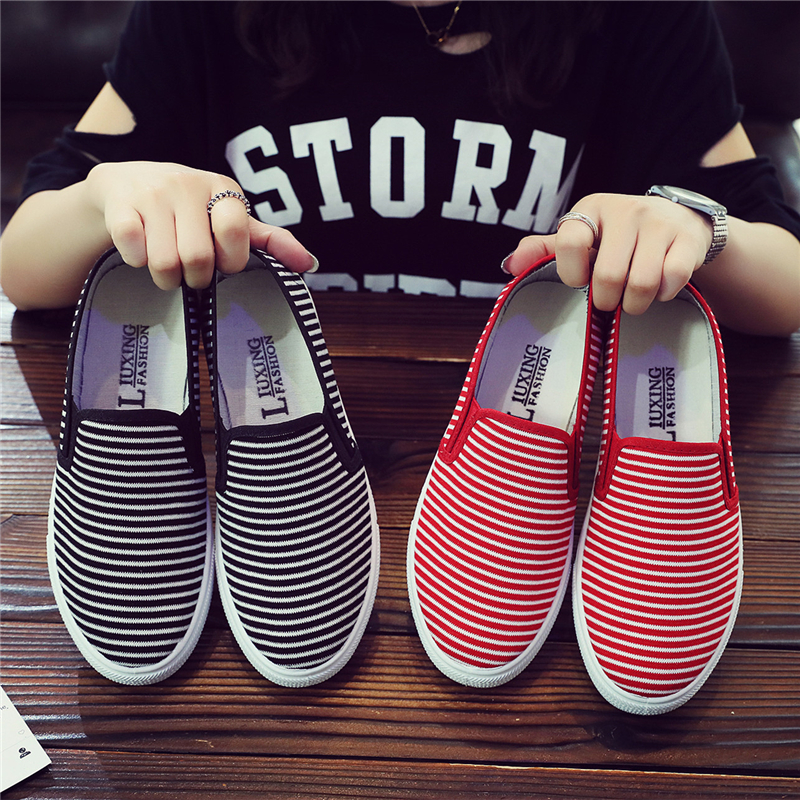 潮鞋 厚底懒人鞋 条纹百搭洋气一脚蹬女鞋 子2025春款 网红帆布小白鞋