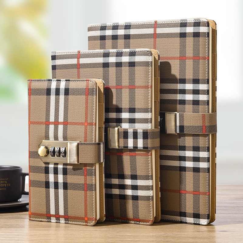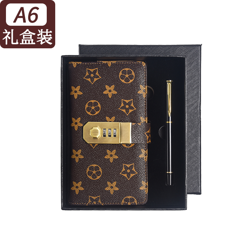 带锁密码 本笔记本子商务记事本加厚办公用品简约ins风日记本大小学生便携随身小号本复古皮面工作印花记录本