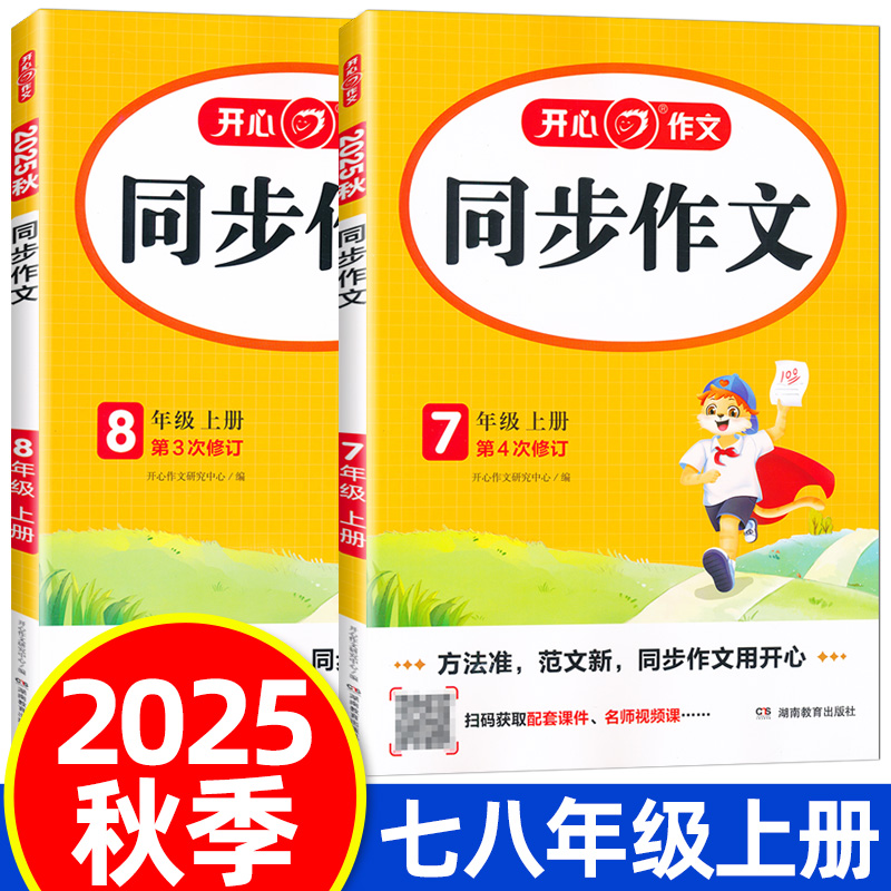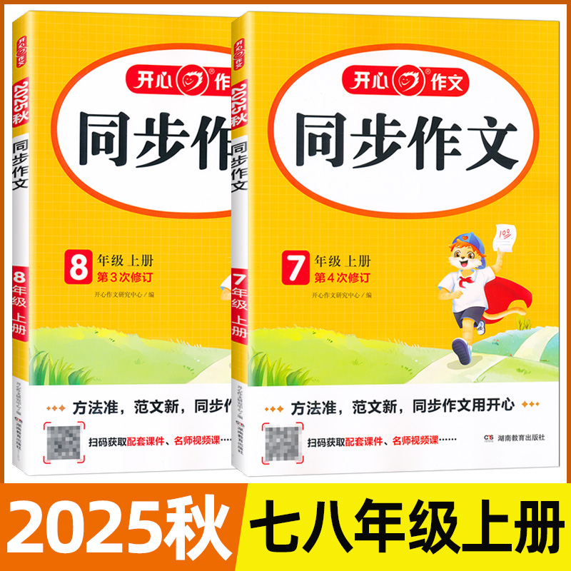 2025秋同步作文七年级八年级上下册部编人教版 初中生初一初二78年级语文教材配套阅读与写作理解训练书范文大全天天练作文开心作文