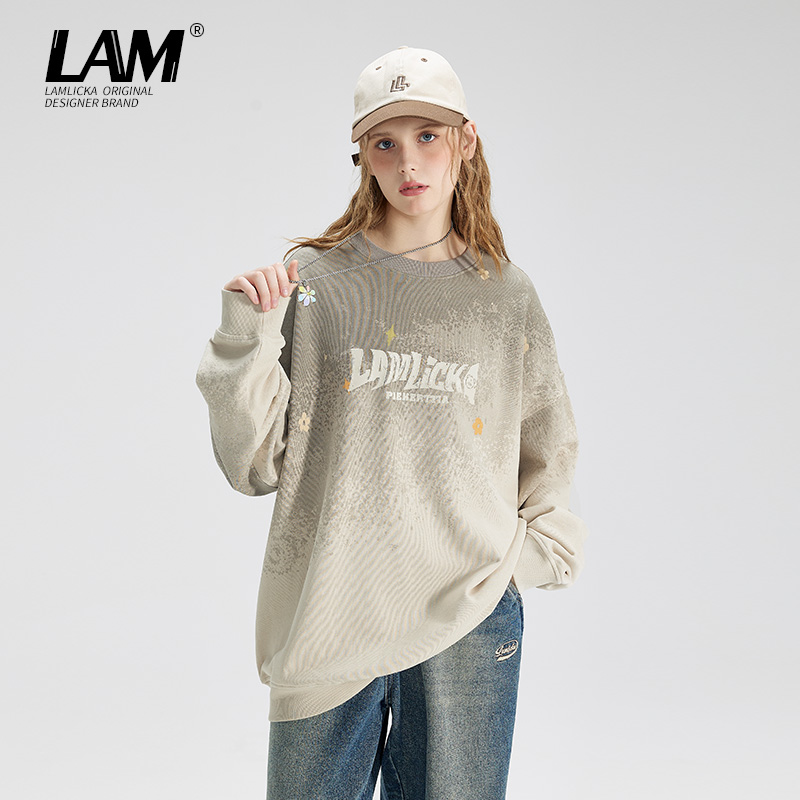 LAMLICKA 上衣 LAM秋冬扎染字母印花潮流宽松卫衣男女oversize套装