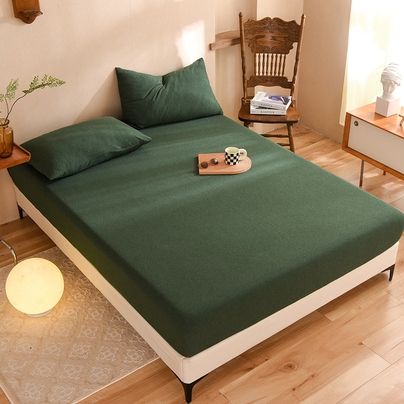 A母婴级水洗棉床笠单件纯色床罩三件套席梦思床垫保护套防滑床单