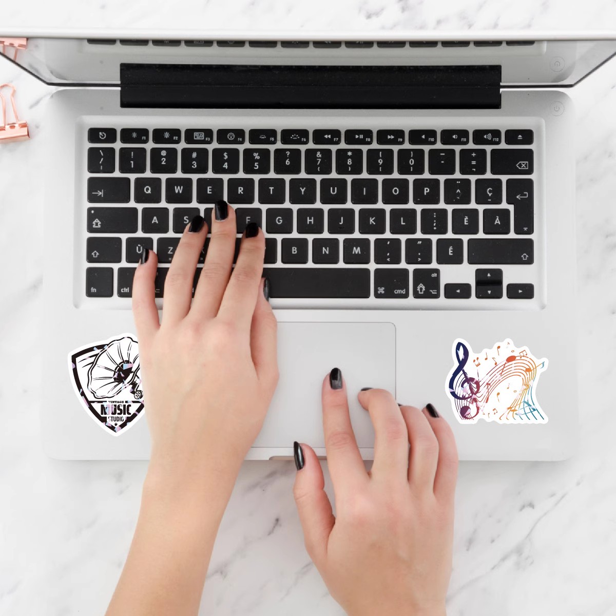50张全息镭射闪光音乐五线谱音符吉他钢琴乐器贴纸笔记本电脑平板行李箱汽车摩托车头盔划痕装 饰手账贴画防水