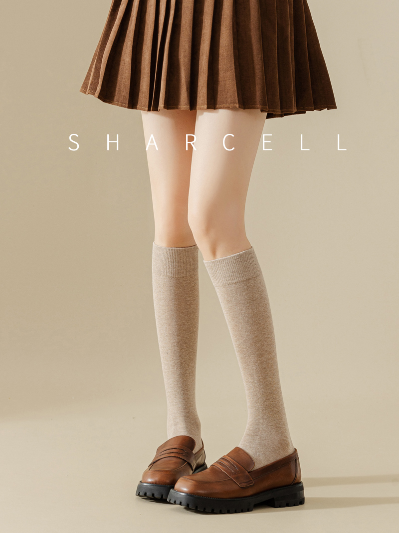小腿袜女春秋纯棉jk长筒袜日系棕色显瘦中筒半截长腿高筒及膝长袜