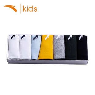 安踏儿童袜子七双装 男童女童运动袜宝宝短袜白色黑色条纹袜子正品