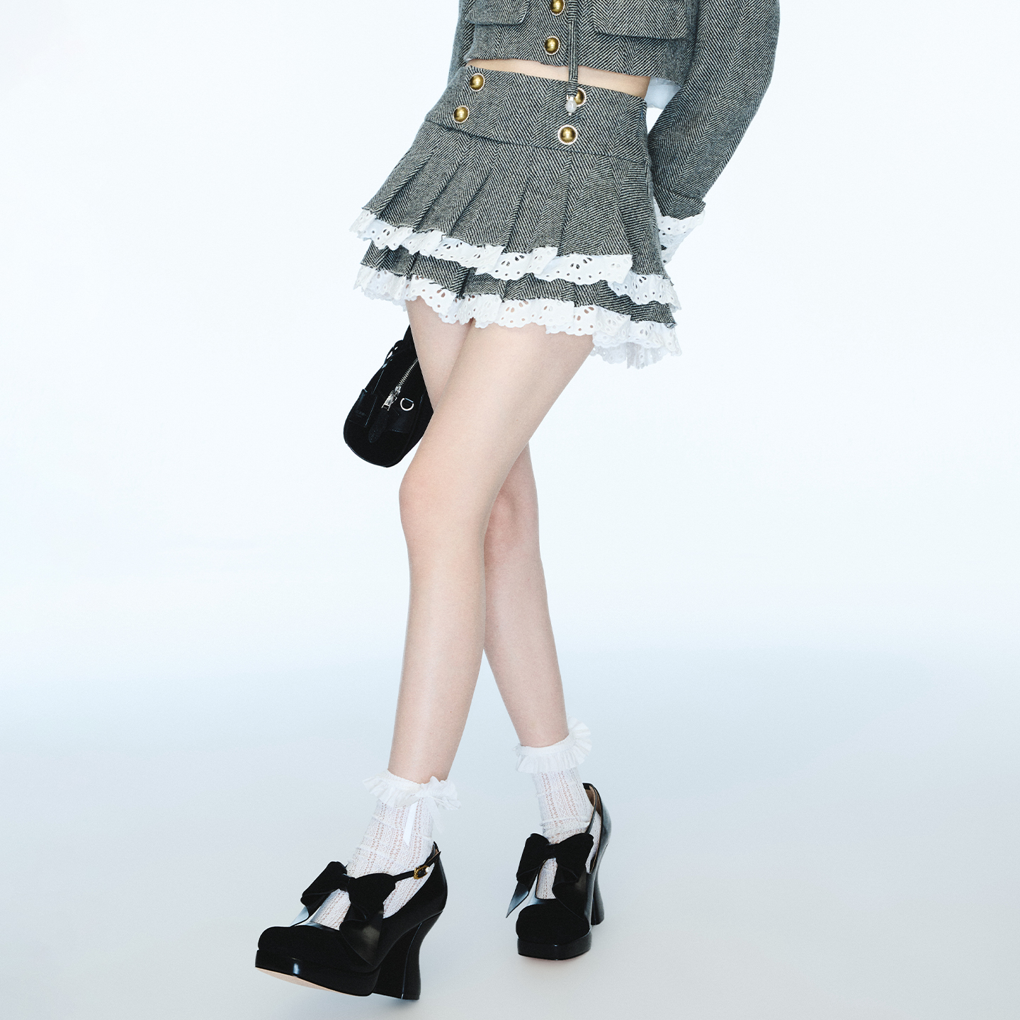 Juicy 灰色蝴蝶结A字长裙子 Couture橘滋半身裙女2025年秋冬新款