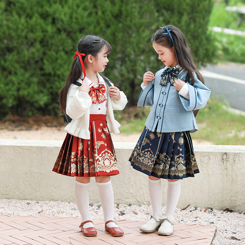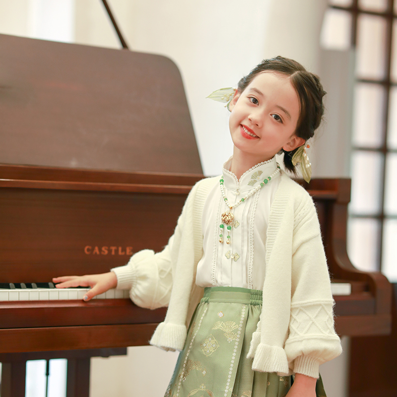 汉服女童春秋款 十三余童装 马面裙套装 国风短款 万松花信