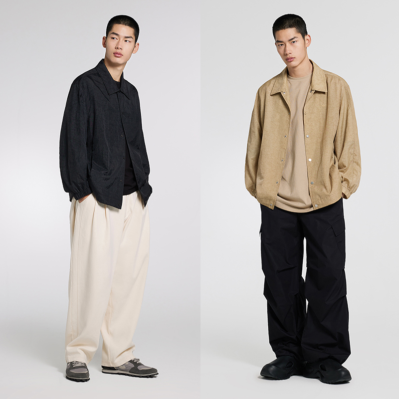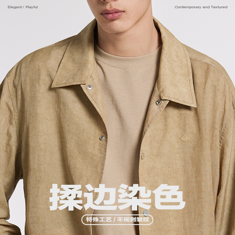 秋季 复古前卫长袖 新款 教练夹克翻领印花毛边美式 外套 工装 速写男装