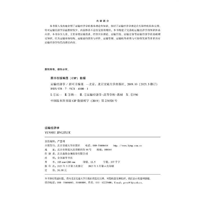 第2次修订本 运输经济学 2023年3月