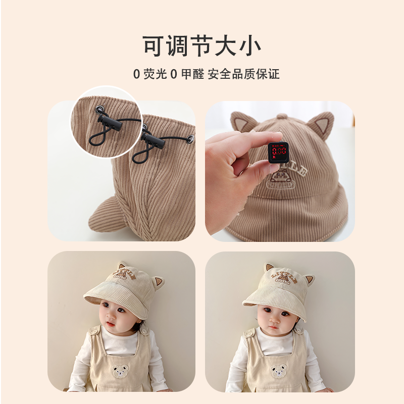 宝宝帽子秋冬季 婴儿渔夫帽儿童男童女童ins韩系遮阳盆帽 春秋薄款