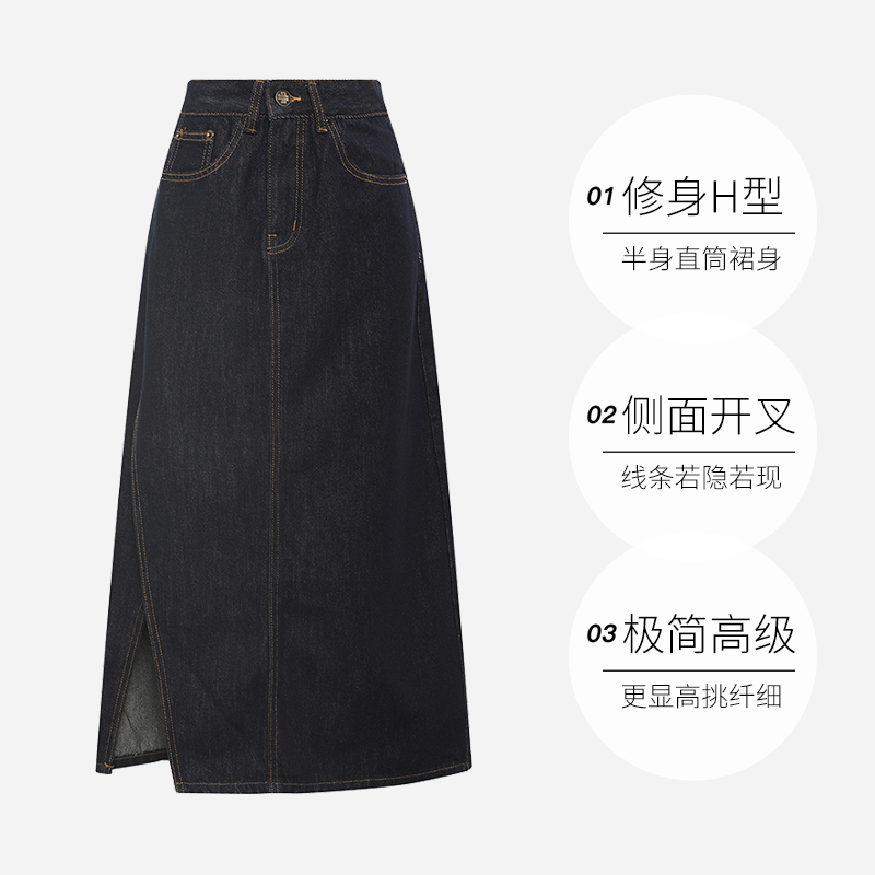 自营 中长款 Petit 侧开衩女士牛仔半裙 高腰牛仔裙中裙 Bari