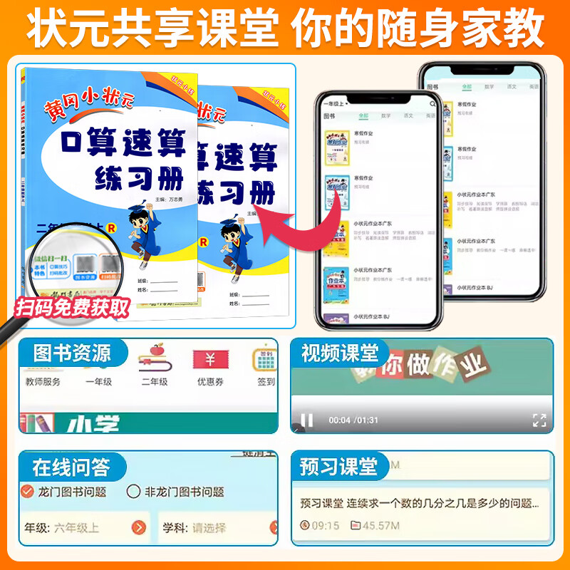 123456同步计算解决问题口算天天练作业心算计算能手 北师版 2025秋黄冈小状元 口算速算练习册一二三四五六数学下册上册人教版