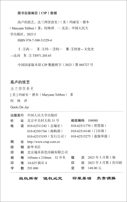 美 玛丽安 德本Maryann 高卢 中国人民大学出版 法兰西饮食史 Tebben 社9787300315294 技艺