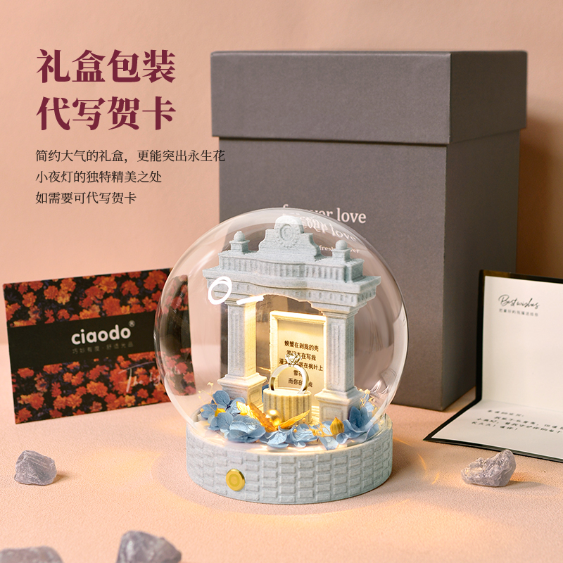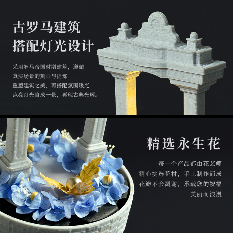 黑色玫瑰Rose永生花礼盒情人节送女友生日告白礼物卧室Only小夜灯