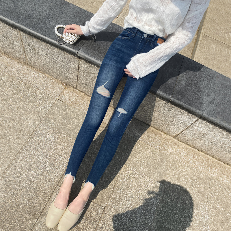 高腰弹力显瘦百搭不贴腿喇叭裤 美式 辣妹爆款 女秋季 深蓝微喇牛仔裤