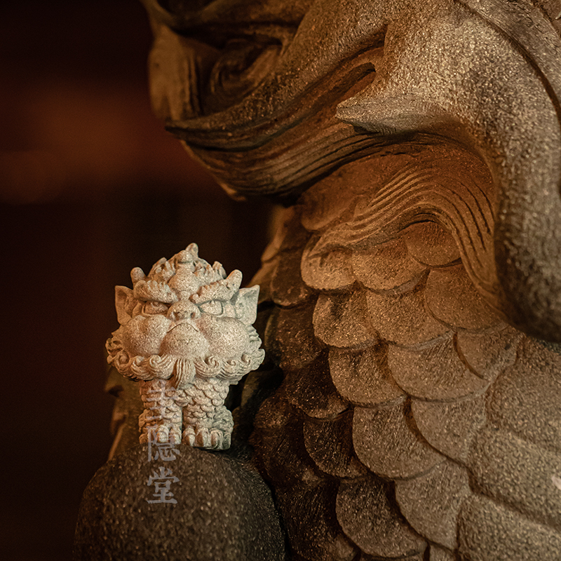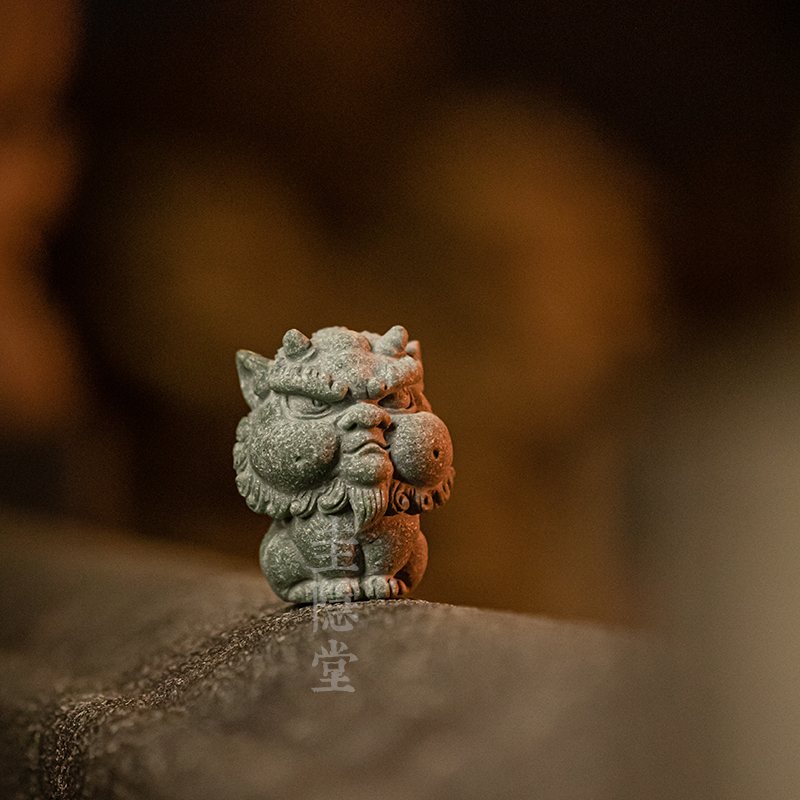 圭隐堂青砂石招财可养麒麟貔貅茶宠摆件中式 饰品 国潮风书房客厅装