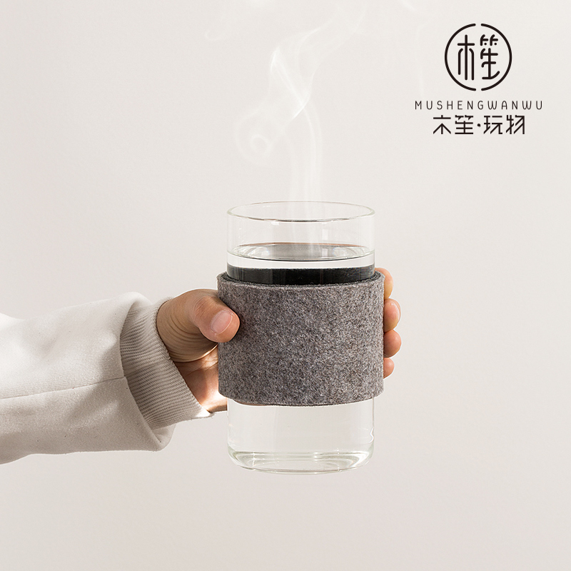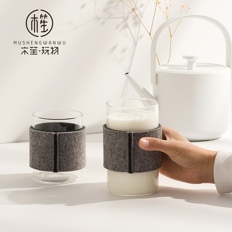 木笙玩物高硼硅玻璃水杯耐高温带隔热杯套防烫喝水杯子家用小茶杯