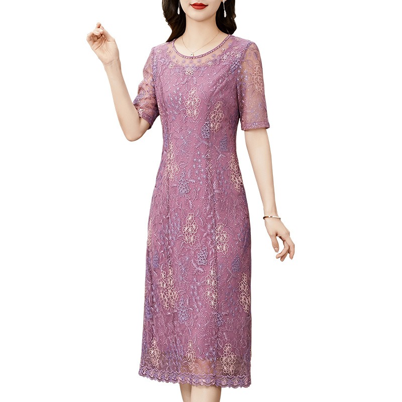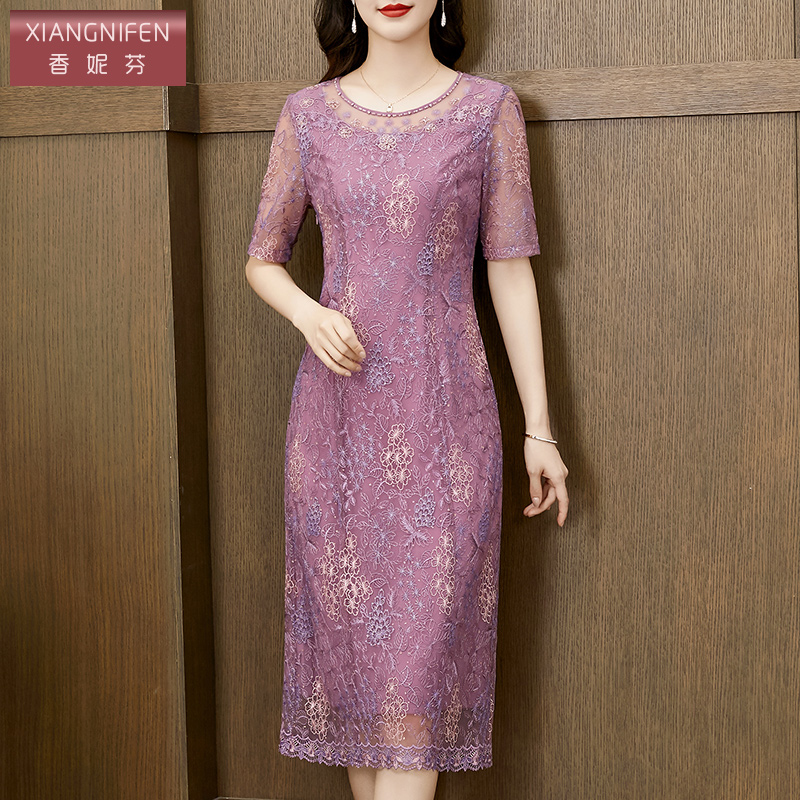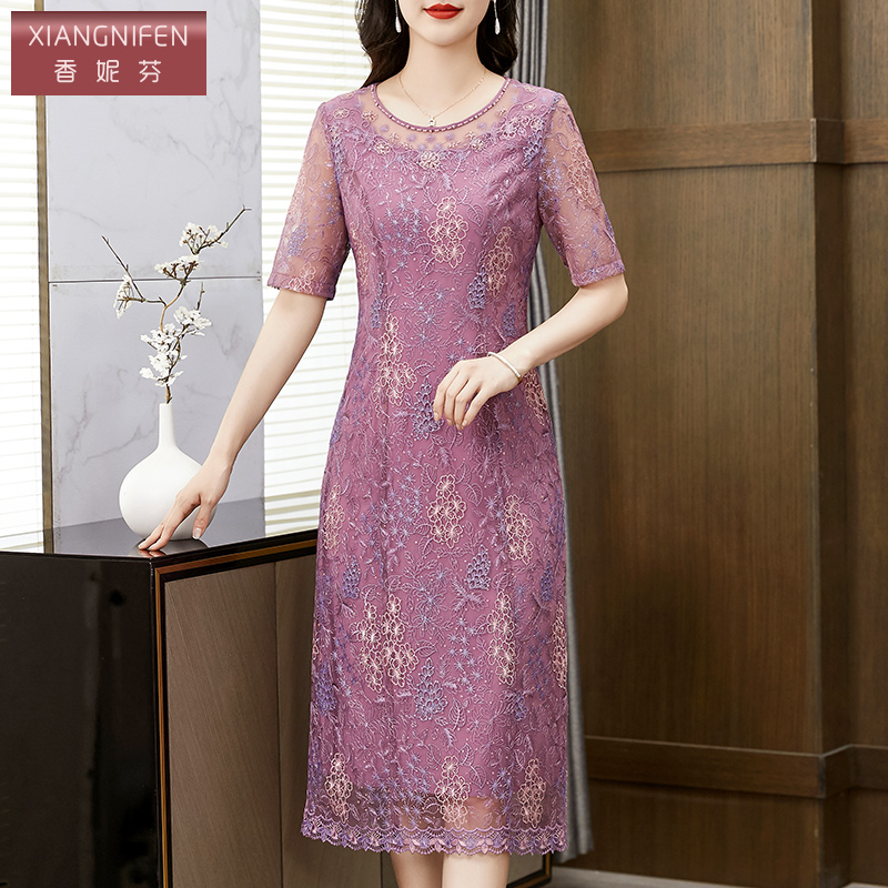 高贵气质遮肚子显瘦妈妈装 新款 洋气刺绣连衣裙2025夏季 香妮芬时尚