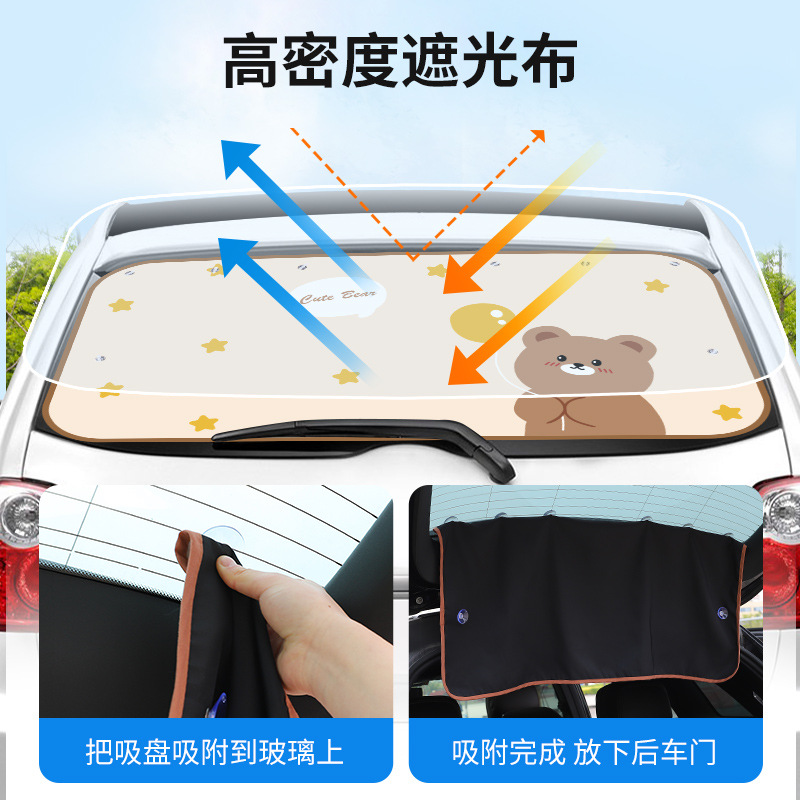 汽车内防晒隔热遮阳挡后挡风玻璃可爱小熊遮阳板车用窗帘后挡遮光