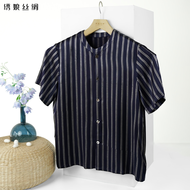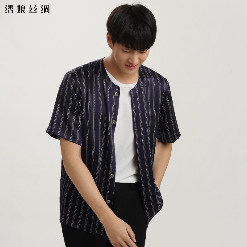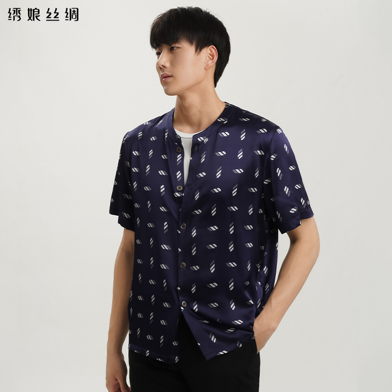 圆领可外穿休闲男短袖 绣娘丝绸礼盒男士 真丝家居服100%桑蚕丝薄款