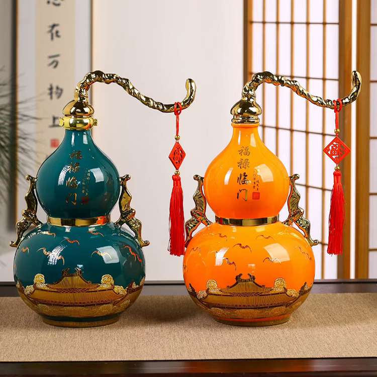 景德镇陶瓷红葫芦空酒瓶高端泡酒坛5斤装 密封酒壶白酒瓶摆件 散装