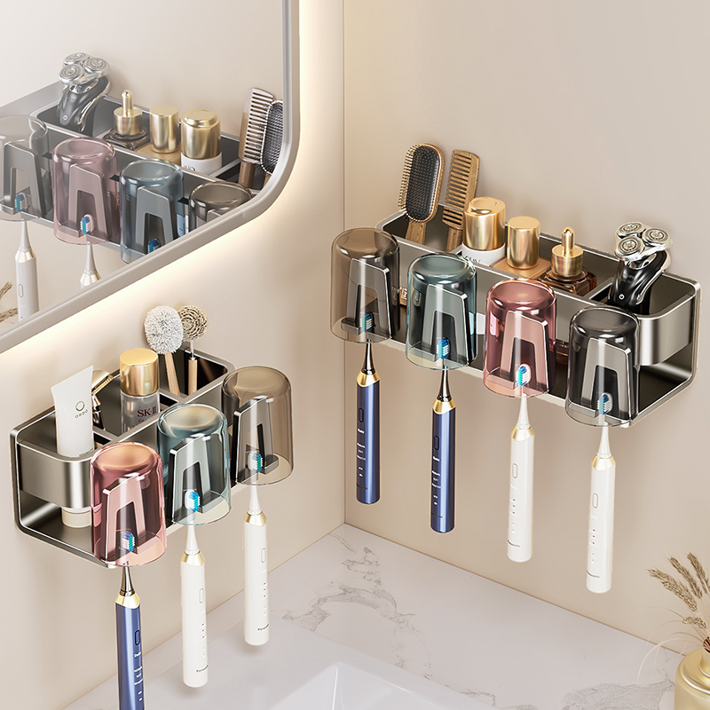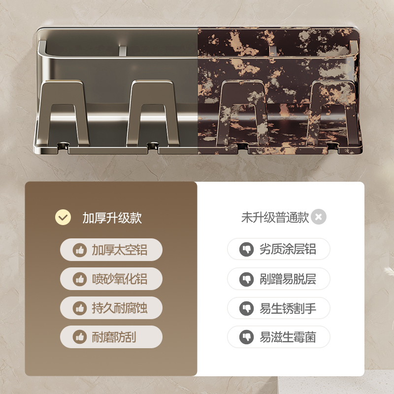 牙刷置物架刷牙杯漱口杯架子洗漱台浴室挂架铝合金太空铝免打孔