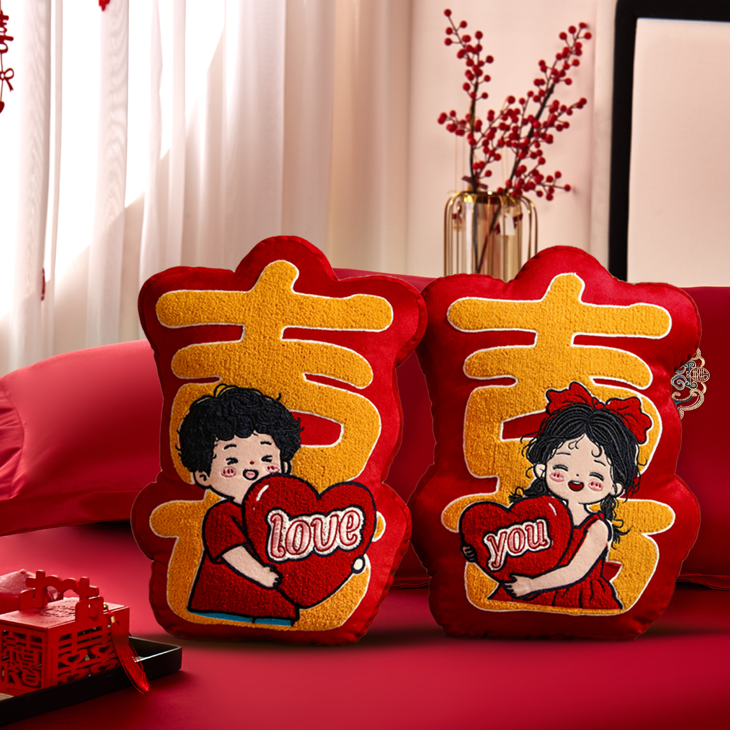 压床娃娃一对结婚新款 高档新婚喜字玩偶婚礼床上摆件婚庆用品大全