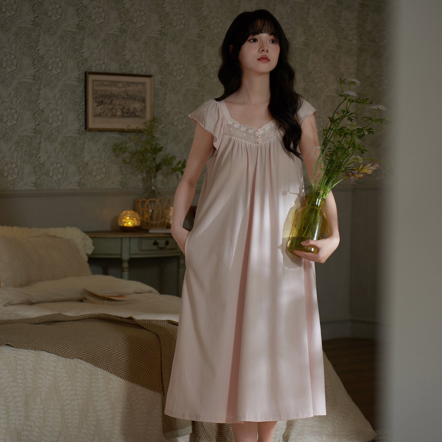 马克公主凉感莫代尔棉睡裙女夏季 甜美连衣裙带胸垫睡衣长裙 小飞袖
