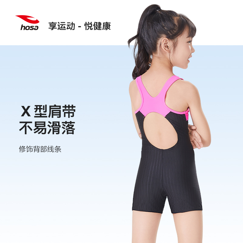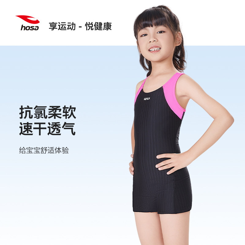 hosa浩沙女童泳衣平角游泳馆专用女孩训练比赛竞速连体式 儿童泳装