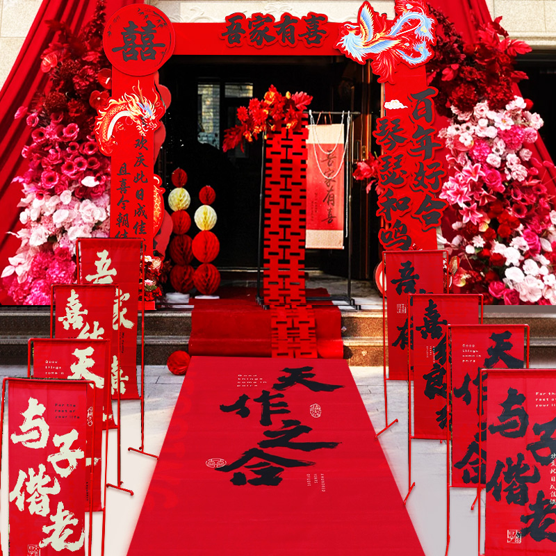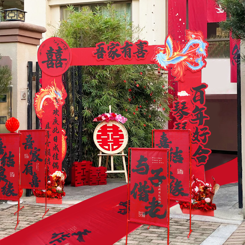 结婚kt板拱门装 婚礼迎宾支架路引农村院子布置备婚用品大全 饰套装