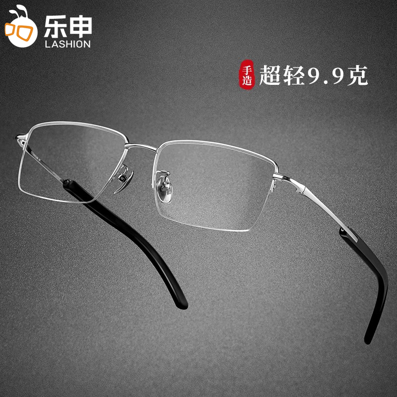 超轻纯钛半框近视眼镜框男款 可配度数镜片专业网上配防蓝光眼睛架