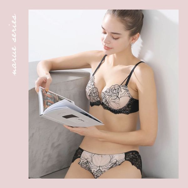 日本NARUE内衣女集中聚拢显大收副乳防外扩性感纯欲薄纱蕾丝文胸