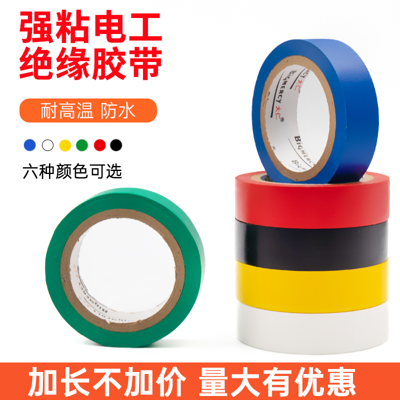电工胶布绝缘胶带PVC防水耐高压黑胶布汽车线束扎带白色电胶布防漏电线电缆电气电源水电标识电胶带
