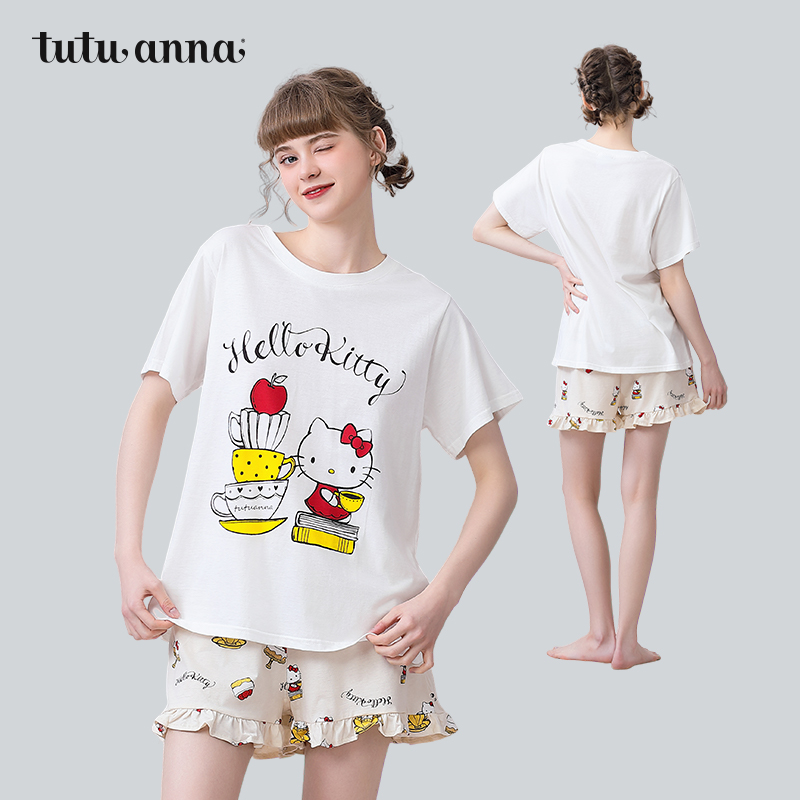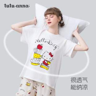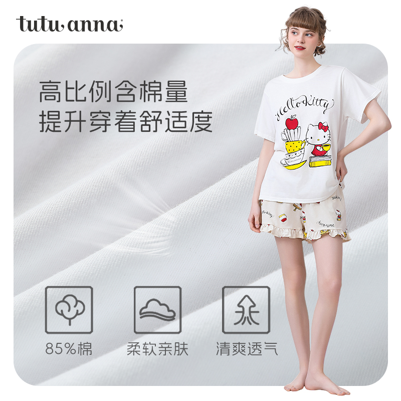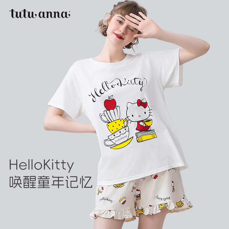 短裤 HelloKitty印花棉质短袖 两件套睡衣 女夏 tutuanna家居服睡衣