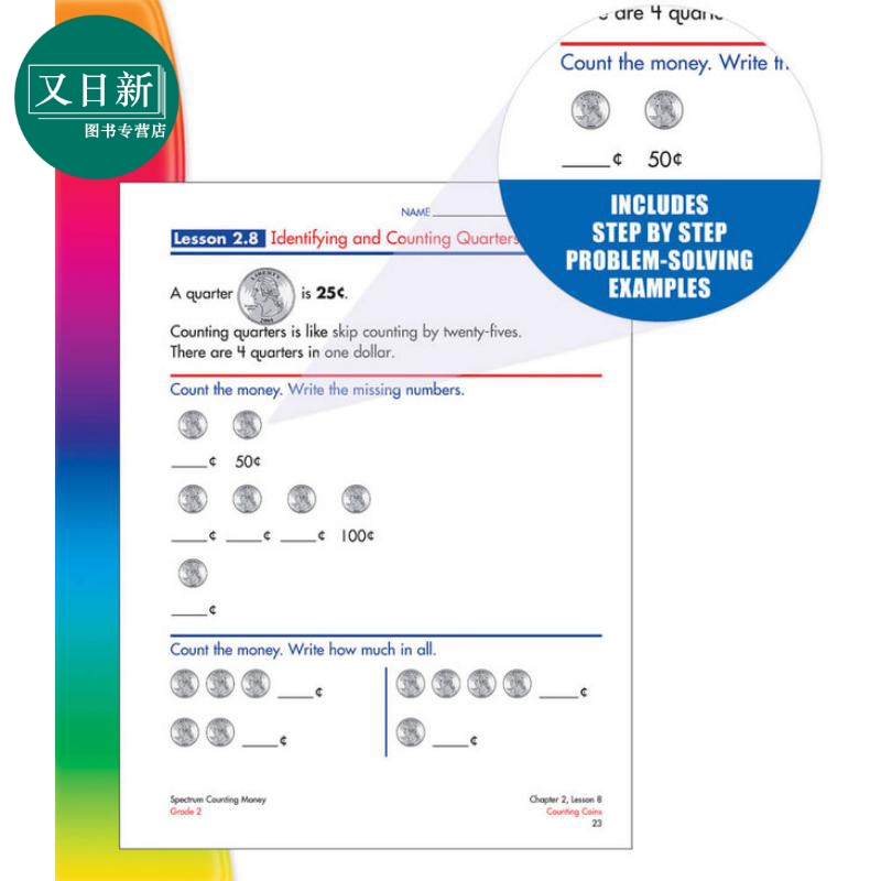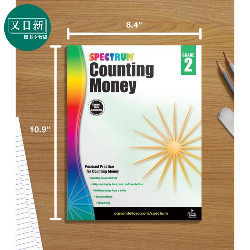 Dellosa 又日新 Counting 2英文原版 进口 Grade 二年级Spectrum Money Education 光谱练习册 小学教辅参考书Carson 数钱