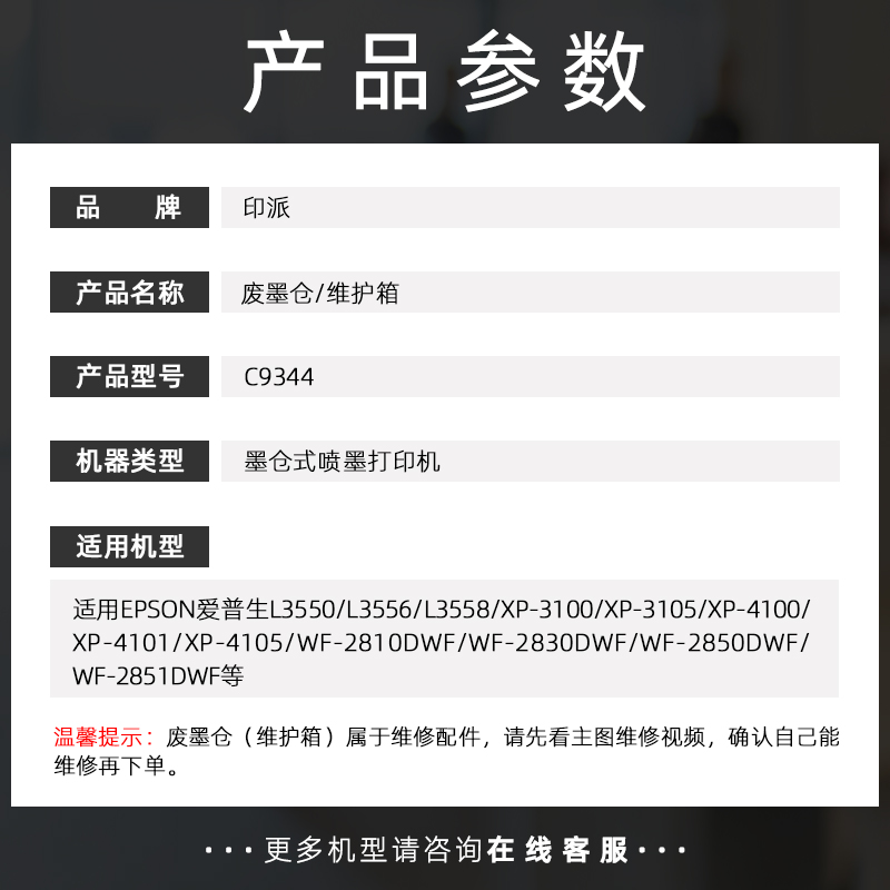 L3550 4100 3105 4101打印机废墨收集器海绵废墨垫 3100 适用EPSON爱普生L3558维护箱C9344废墨仓L3556