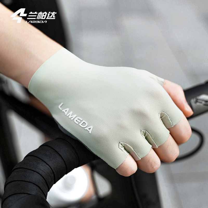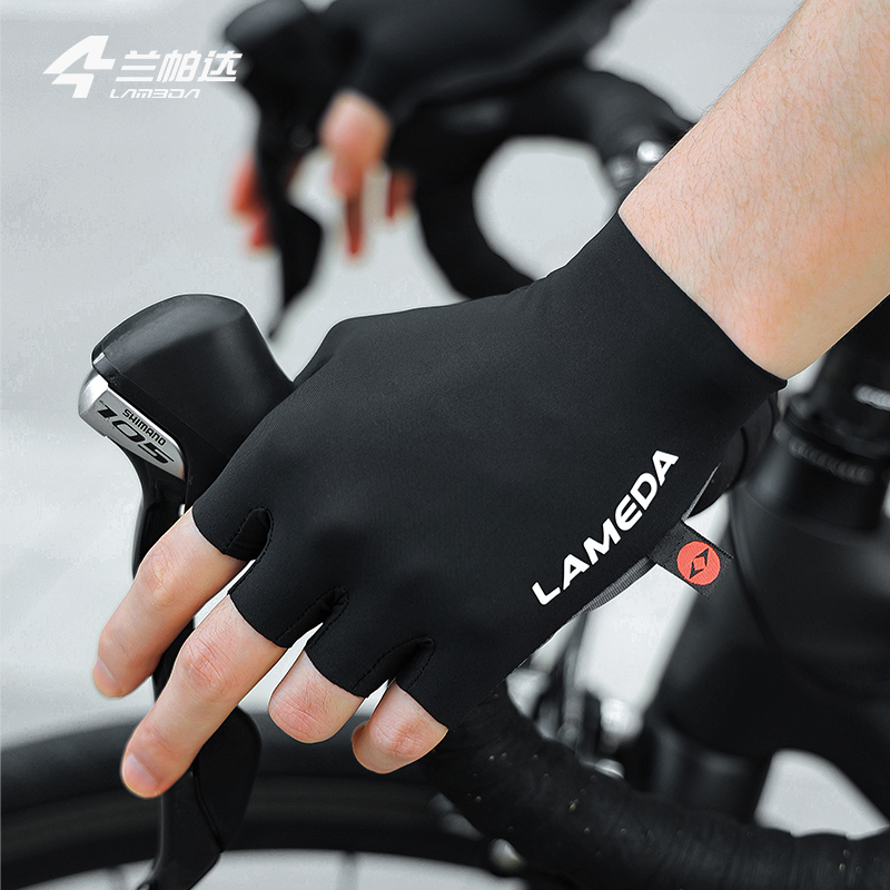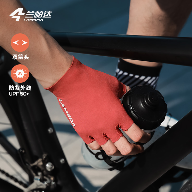 兰帕达双箭头掌垫骑行手套防紫外线半指短指男女春夏排汗公路月影