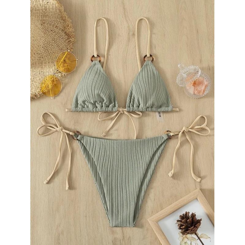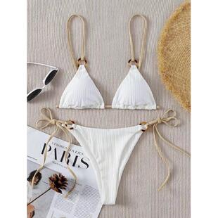 2024新款 女 ins泳衣欧美分体比基尼两件套仙女范性感色系带泳装