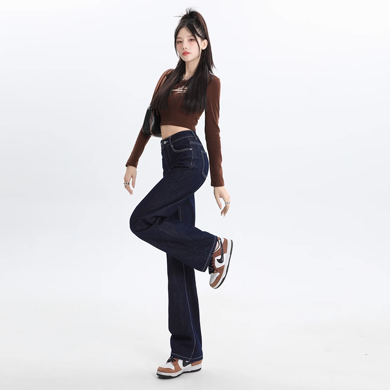 高腰显瘦不贴腿垂感阔腿喇叭裤 2025新款 子 女秋冬季 复古微喇牛仔裤