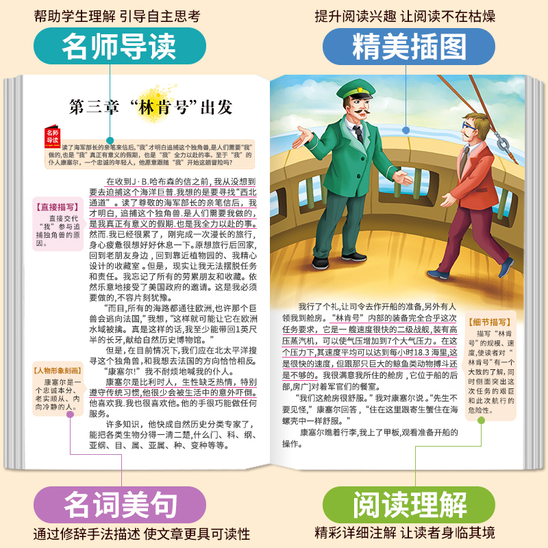 阅读寒暑假书目正版 海底两万里 好孩子书屋系列儿童文学名著故事必小学生一二三四五六年级课外书推荐 加厚原著完整版 彩绘注音版
