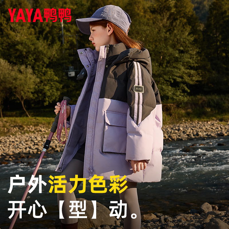 雪中飞2025冬新款 百搭休闲户外外套 女士葫芦纹拼接轻薄羽绒服时尚