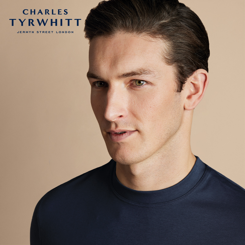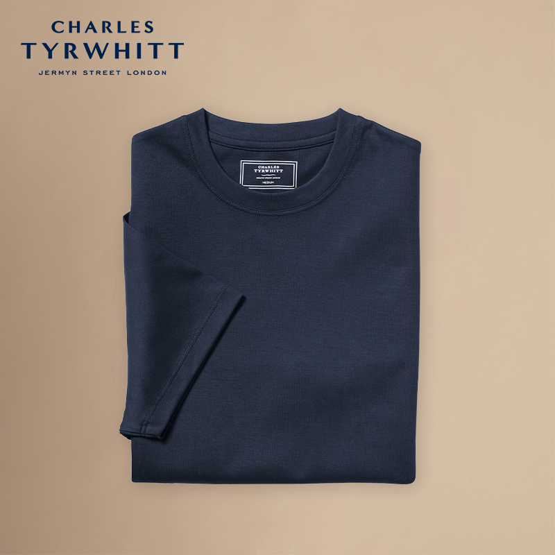 针织圆领T恤 休闲夏简约纯色海军蓝纯棉短袖 CHARLES TYRWHITT男士