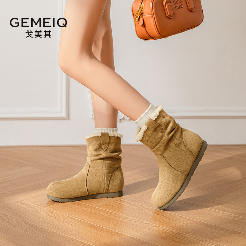 西部短靴显瘦雪地靴 新款 戈美其加绒棉鞋 女皮毛一体棉靴舒适年冬季
