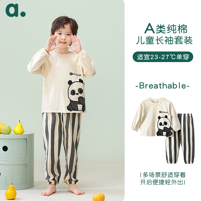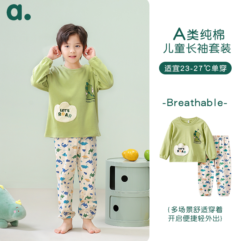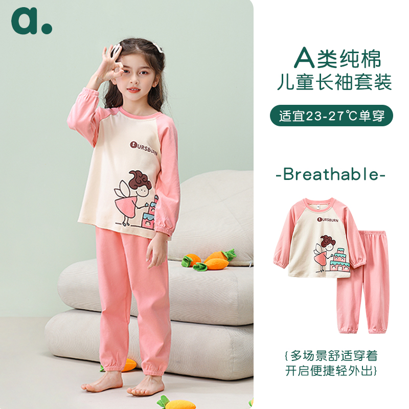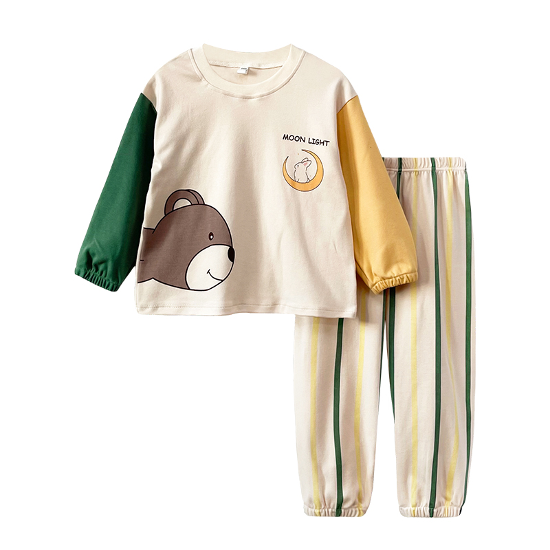长袖 纯棉家居服男女孩睡衣套装 圆领宽松外出 春秋款 安之伴童装