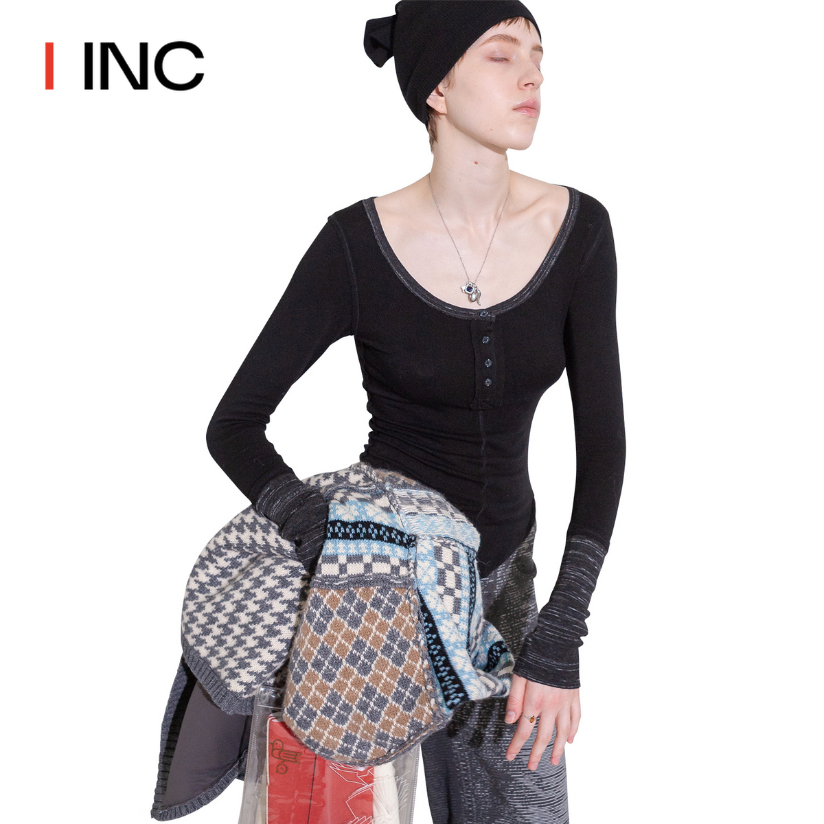 冬季 PERVERZE U领辣妹修身 长袖 IINC 纽扣T恤打底上衣女士 折扣